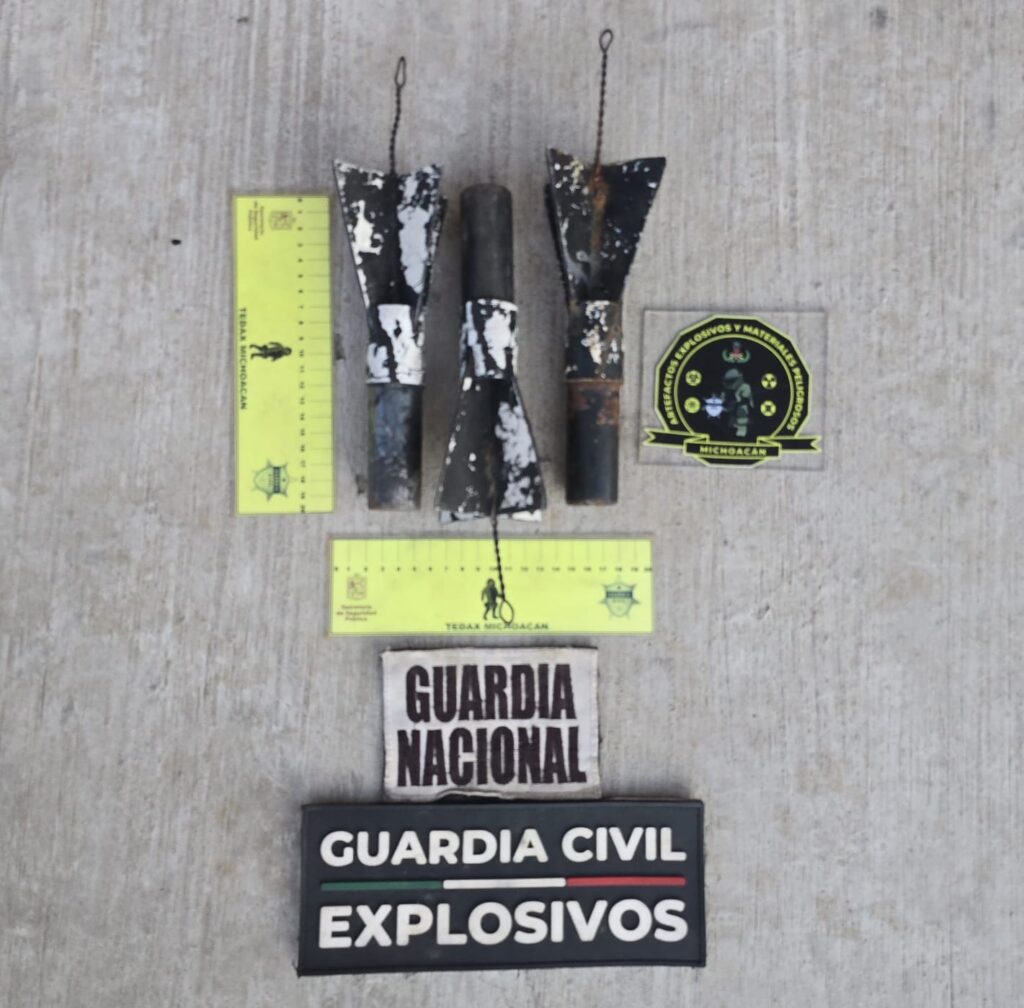 Elementos de la secretarías de Seguridad Pública (SSP) y de la Defensa Nacional (Defensa) aseguraron y desactivaron tres artefactos explosivos que habrían sido fabricados para ser arrojados desde drones en la ciudad de Uruapan, esto en atención a un llamado de emergencia.