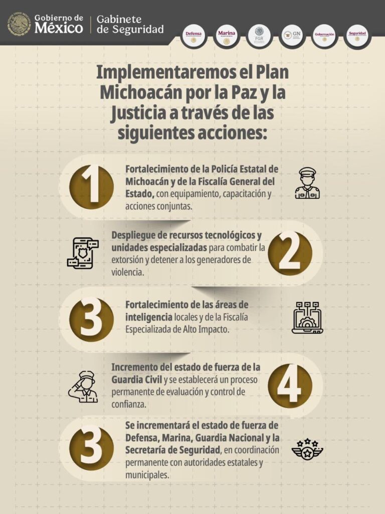 Entre los principales componentes, la legisladora destacó el eje de seguridad y justicia, que contempla la consolidación de la Guardia Nacional, la Guardia Civil y el fortalecimiento de la fiscalía estatal mediante una Fiscalía Especializada en Delitos de Alto Impacto. Asimismo, resaltó la coordinación entre el gobierno federal y el Congreso local para aprobar reformas que den viabilidad jurídica y presupuestal a los nuevos mecanismos de inteligencia e investigación.