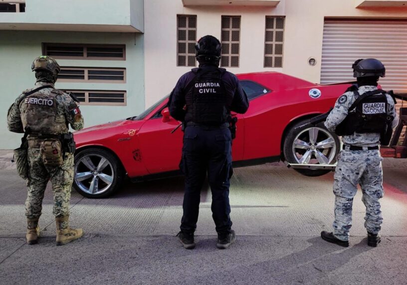 Luego de que el presunto atacante se diera a la fuga ingresando a un inmueble de la calle Río Hoxicazuela, los agentes aseguraron dos unidades blindadas, así como un automotor de la marca Dodge, línea Challenger. En su interior se encontraban una ametralladora con casquillos percutidos de diferentes calibres y varias dosis de metanfetamina.