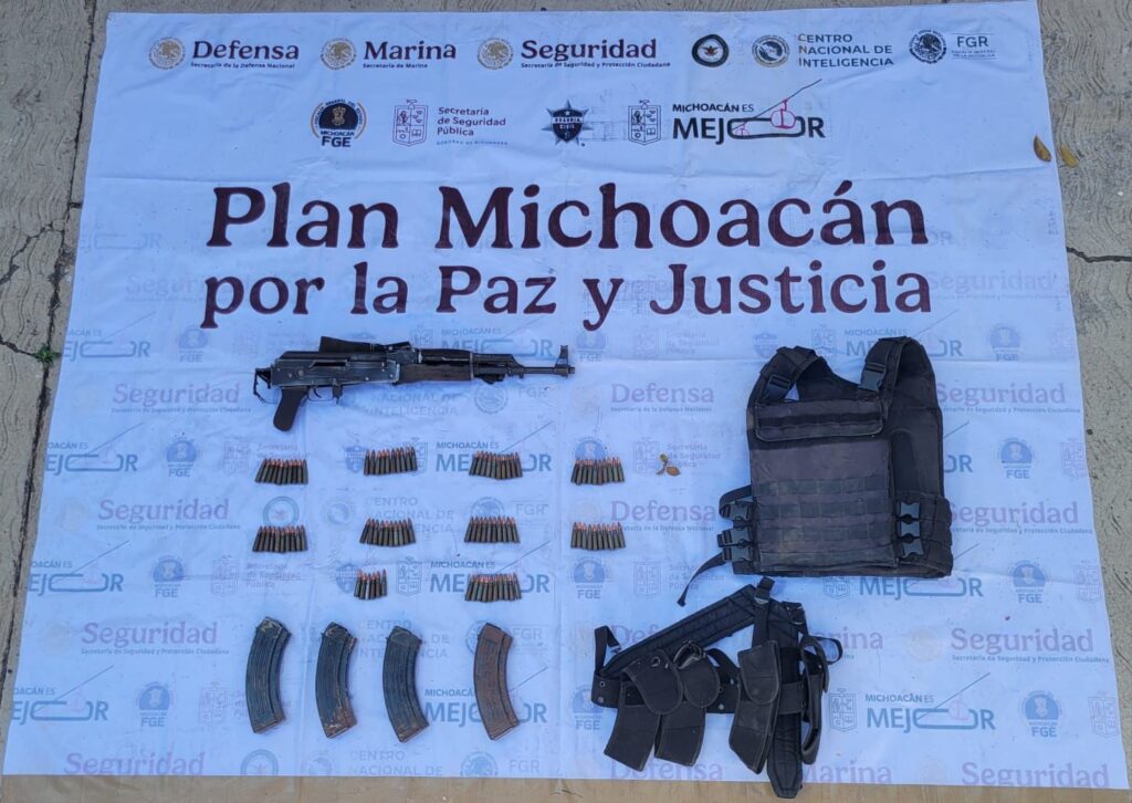 Producto de acciones coordinadas entre elementos de las secretarías de Seguridad Pública (SSP), de la Defensa Nacional (Defensa) y la Guardia Nacional (GN), se logró la detención de dos hombres en posesión de un arma de fuego, la desactivación de ocho artefactos explosivos artesanales y la incineración de 162 plantas de marihuana en cuatro localidades del municipio de Apatzingán.