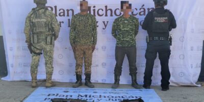 Incautan arma, explosivos e incineran plantas de marihuana; hay 2 detenidos, en Apatzingán