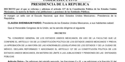 En vigor, decreto sobre pensiones y jubilaciones; a excepción de militares, ningún servidor público podrá cobrar más de 70 mil pesos