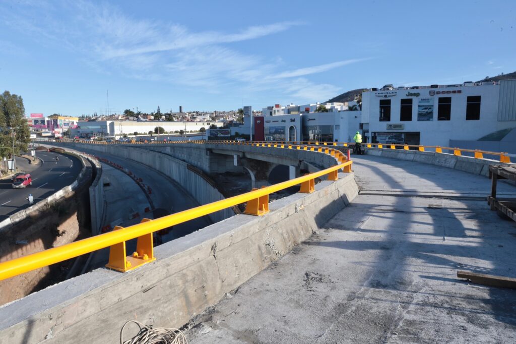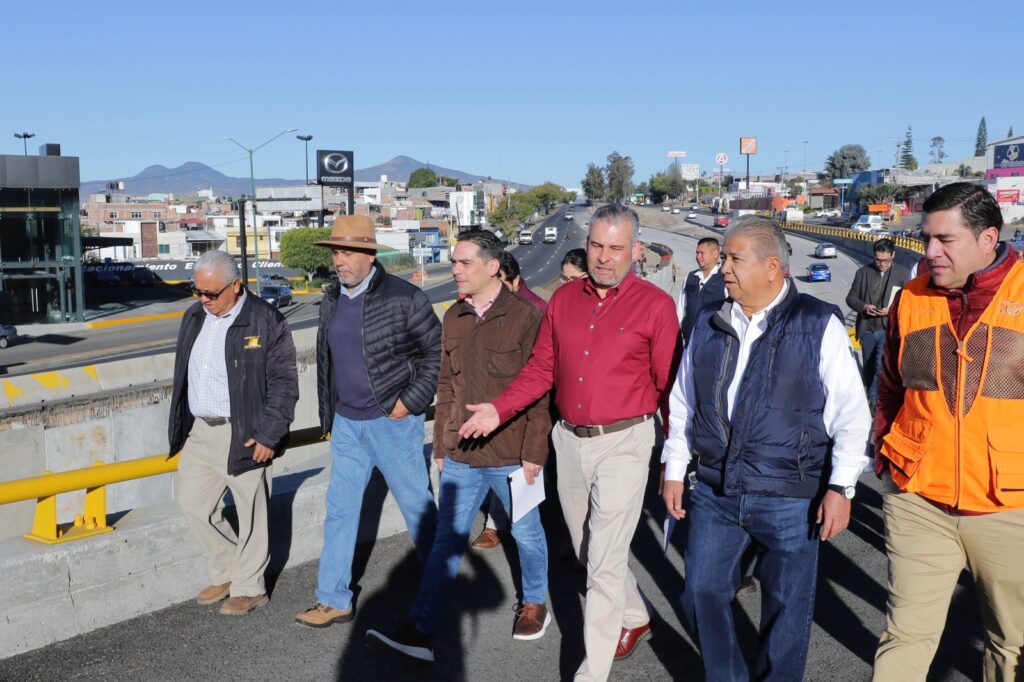 El gobernador Alfredo Ramírez Bedolla y el secretario de Comunicaciones y Obras Públicas (SCOP), Rogelio Zarazúa Sánchez, supervisaron los avances de la obra del distribuidor vial de la salida a Mil Cumbres en donde se informó que el próximo sábado abrirá otro tramo.