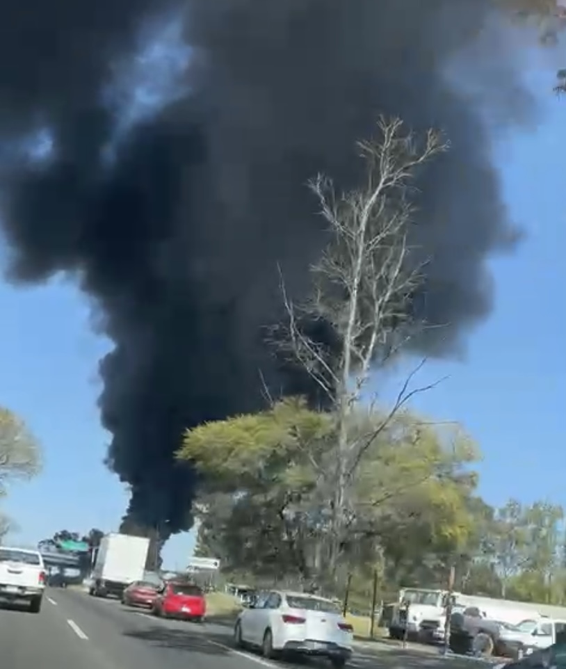 “La Secretaría de Gobierno, a través de la Coordinación Estatal de Protección Civil atienden, en conjunto con el Ayuntamiento de Tarímbaro, el incendio en una planta recicladora de llantas.