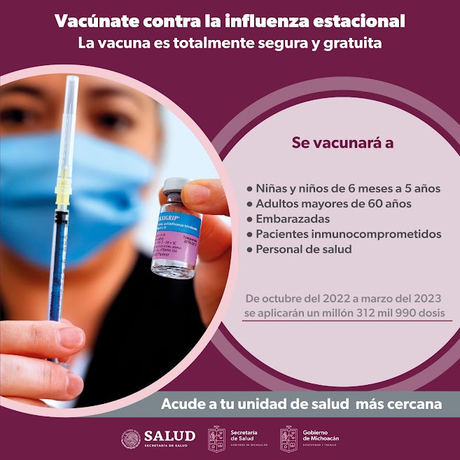 Recordar que desde el inicio de la temporada invernal 2022-2023, que comprende de octubre 2022 a marzo de este año, la meta por aplicar en todas las instituciones del sector salud (IMSS, ISSSTE, SEDENA y SSM) era de más de un millón de dosis, haciendo énfasis en adultos mayores, niños mayores de 6 meses hasta 59 meses, mujeres embarazadas, personal de salud; así como pacientes con enfermedades crónicas por considerarlos grupos vulnerables.