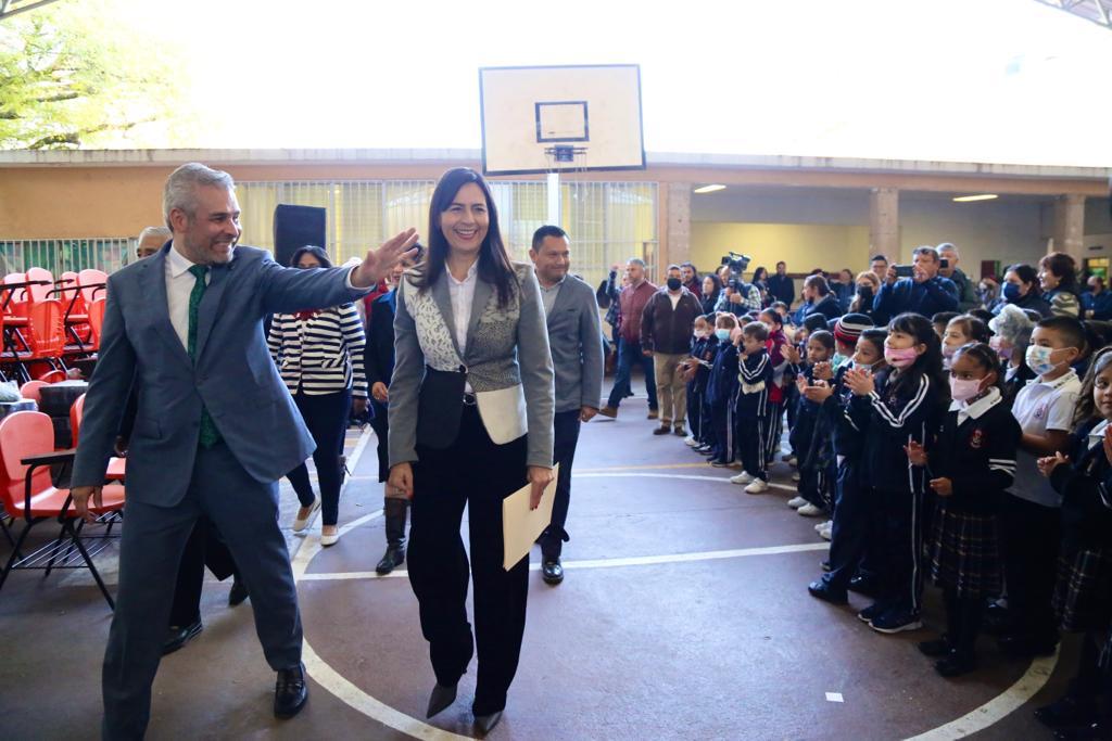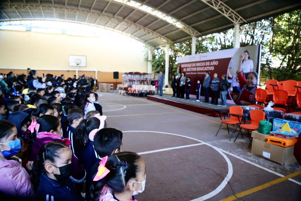 “Venir a la escuela a aprender cosas es parte de la transformación, si queremos lograr cambios (…) Si queremos que avance la tecnología, la civilización, solo se puede lograr estudiando, aprendiendo, compartiendo conocimientos”, compartió el gobernador michoacano, junto a la secretaria de Educación, Gabriela Molina Aguilar.