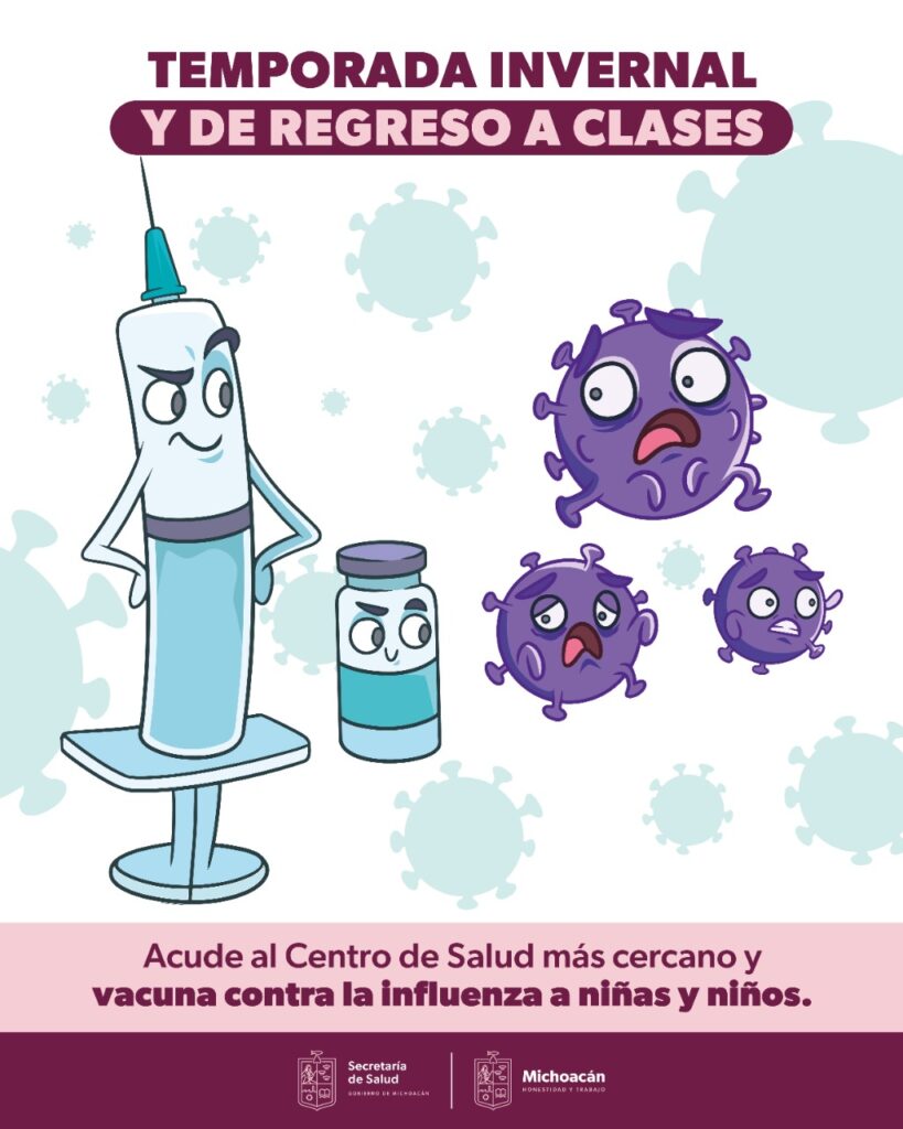 Bajo el lema “Por tu bienestar y el de tu familia ¡vacúnense!”, continúa, en Michoacán, la vacunación contra la influenza estacional, campaña que terminará hasta el mes de marzo, con la meta de haber protegido a un millón 312 mil michoacanos.