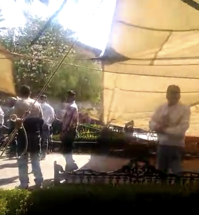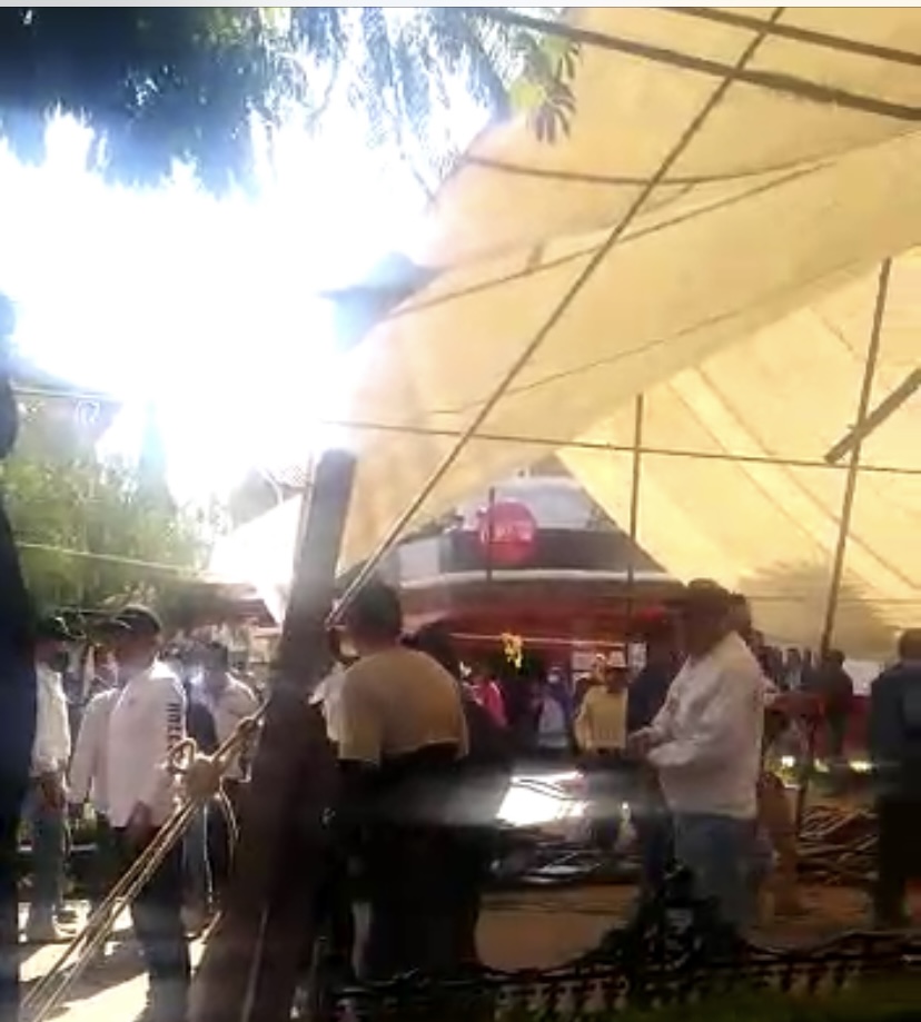 Además de intimidar a los asistentes, desconocidos comenzaron a arrojar al suelo las sillas donde estarían los asistentes, además de derribar el enlonado que se había colocado para proteger del sol a las personas.