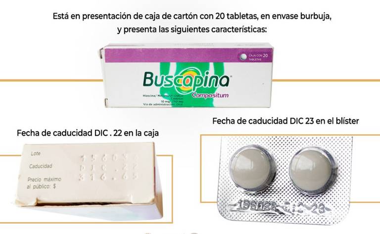 A nivel nacional, la Cofepris detectó la falsificación en el mercado del lote 156036 de Buscapina®️ Compositum (hioscina/metamizol sódico) 10 mg/250 mg, así como la comercialización ilegal de los números de lote BMXA001 y BMXA002, los cuales no fueron liberados para su venta por Sanofi Aventis de México S.A. de C.V.