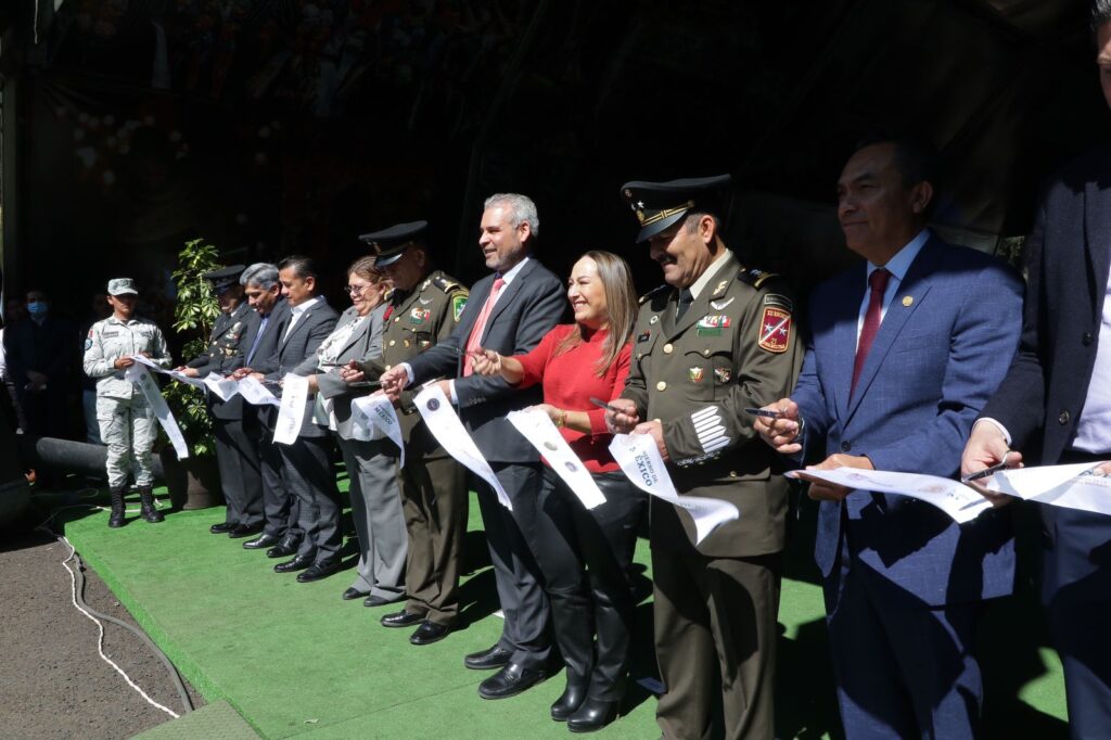 El gobernador Alfredo Ramírez Bedolla inauguró la exposición militar “La Gran Fuerza de México”, acompañado de la presidenta honoraria del Sistema DIF estatal, Grisel Tello Pimentel.