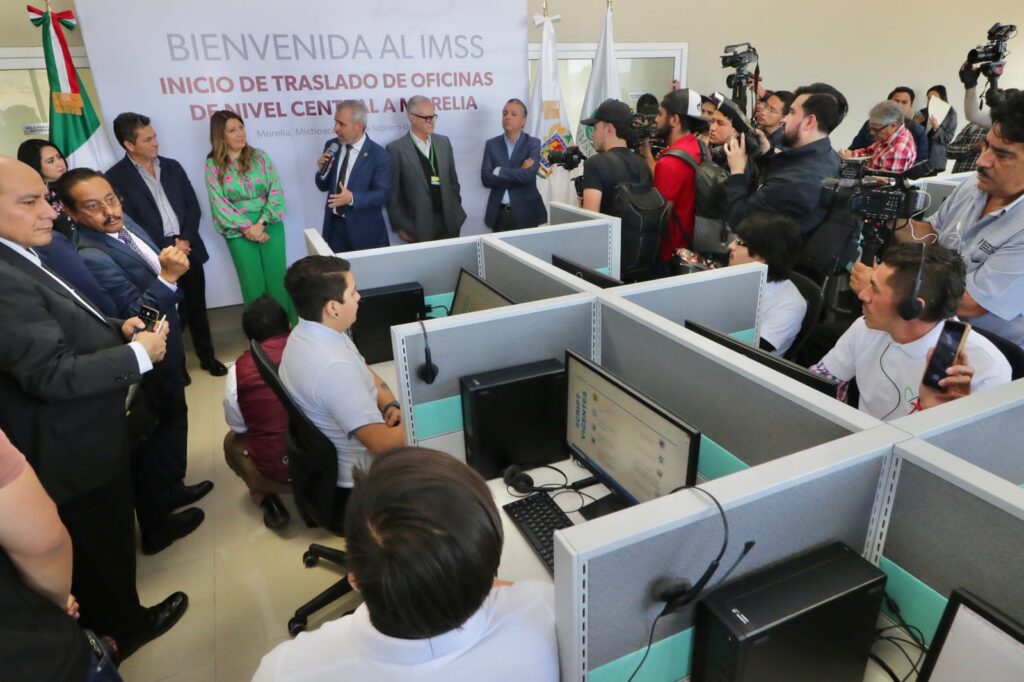 En el Centro de Primer Contacto, ubicado en el corporativo de Tres Marías, el mandatario estatal destacó que este es el primer paso del traslado de 450 trabajadores de las áreas Administrativa, Jurídica y Finanzas que ofrecerán sus servicios, desde estas oficinas, a derechohabientes y empleados del IMSS.
