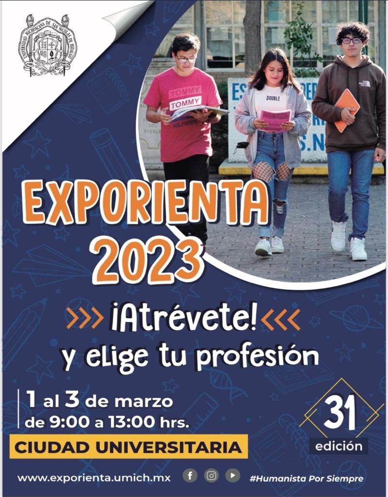 La Universidad Michoacana invita a estudiantes de preparatoria, a la comunidad educativa y a madres y padres de familia a asistir a la “ExpOrienta, atrévete a elegir”, que inicia este miércoles 1 de marzo y concluye el viernes.