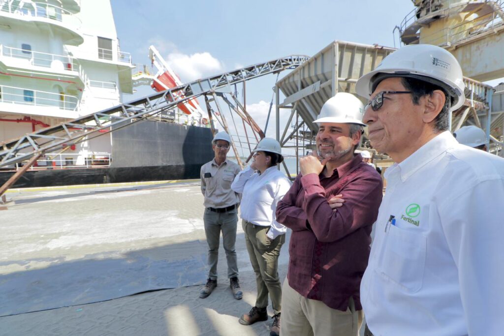 Acompañado por la directora comercial de Grupo Fertinal, Marbet Angulo y el gerente general de la planta, Luis Jorge Marín, el mandatario recorrió el complejo industrial que surte el 44 por ciento del mercado de fosfato en México, con una producción de 145 mil toneladas entregadas de enero a la fecha, lo que representa un avance del 26 por ciento de la meta estimada para este año.