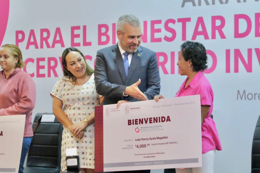 “Hoy las mujeres de Michoacán recibirán un apoyo económico para fortalecer su economía, su ánimo y que tengan este respaldo para que continúen con su tratamiento”, señaló el mandatario estatal.
