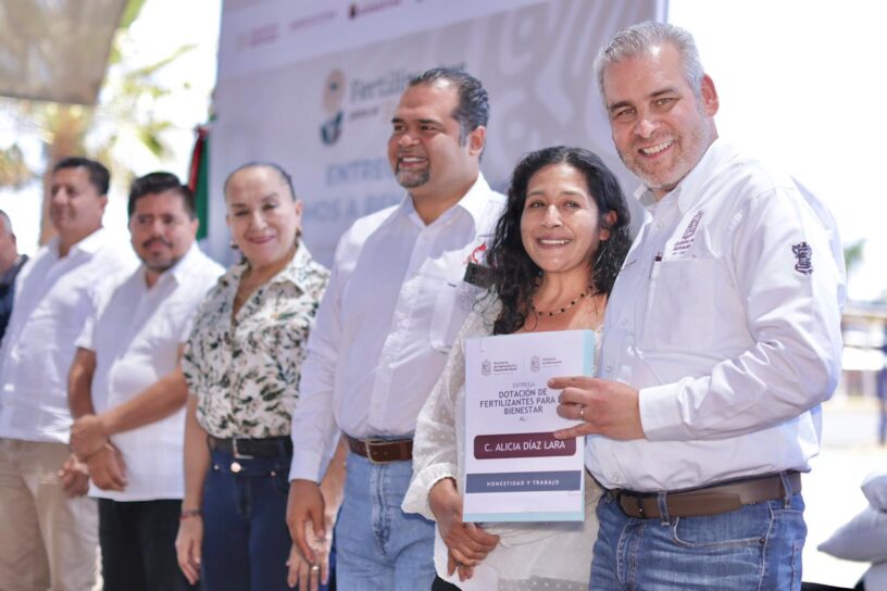 El gobernador Alfredo Ramírez Bedolla, destacó que gracias al apoyo del presidente Andrés Manuel López Obrador, este año se entrega más fertilizante gratuito y de calidad a pequeños productores del campo.
