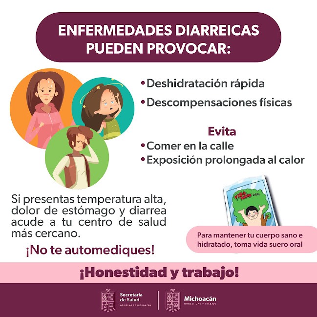 Durante la temporada de calor, es frecuente observar un incremento en la incidencia de enfermedades diarreicas entre el 10 y 15 por ciento del comportamiento anual, por ello, la Secretaría de Salud de Michoacán (SSM) exhorta a la población a extremar cuidados.