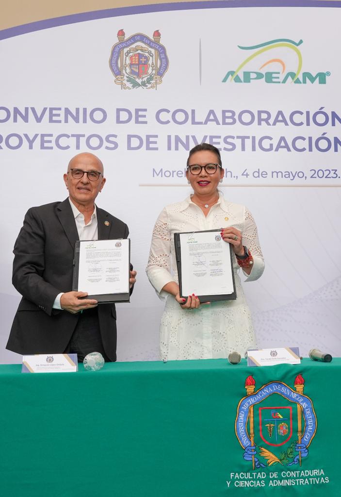 El acuerdo firmado por la rectora y el director general de la APEAM, Armando López Orduña, permitirá desarrollar proyectos de investigación entre ambas instancias.