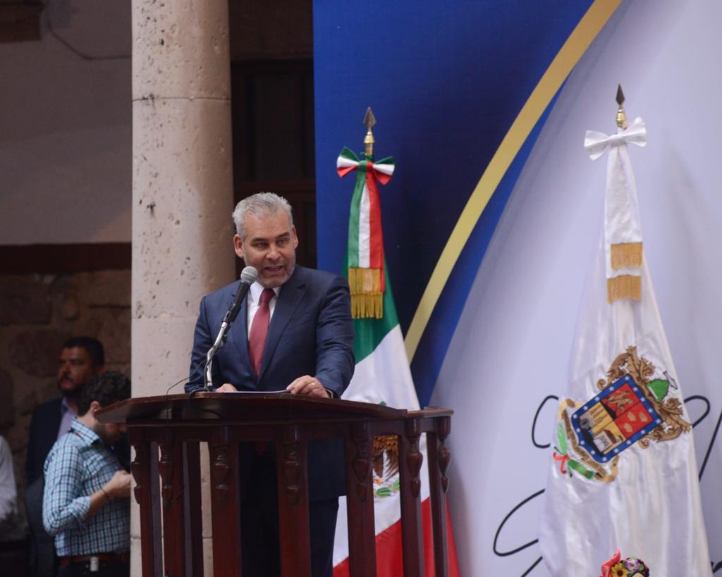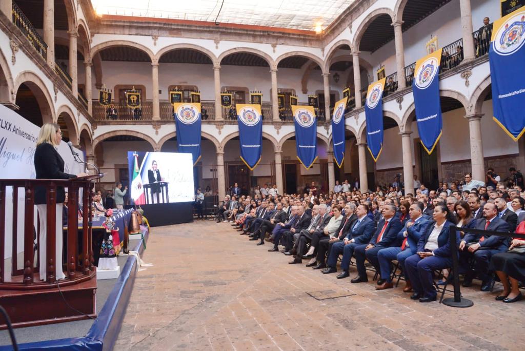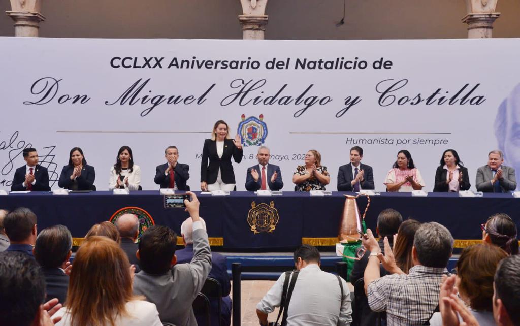 “Reitero que caminaré con ustedes hasta lograr que la Universidad Michoacana de San Nicolás de Hidalgo supere sus problemas económicos y financieros y hasta que logremos el reconocimiento de su carácter nacional, la obtención de su presupuesto justo, pleno y suficiente, así como el establecimiento claro y preciso en la Constitución del Estado, de su autonomía”, afirmó el gobernador Alfredo Ramírez Bedolla, al asistir con la rectora Yarabí Ávila González, al acto con motivo del CCLXX Aniversario del Natalicio de Don Miguel Hidalgo y Costilla.