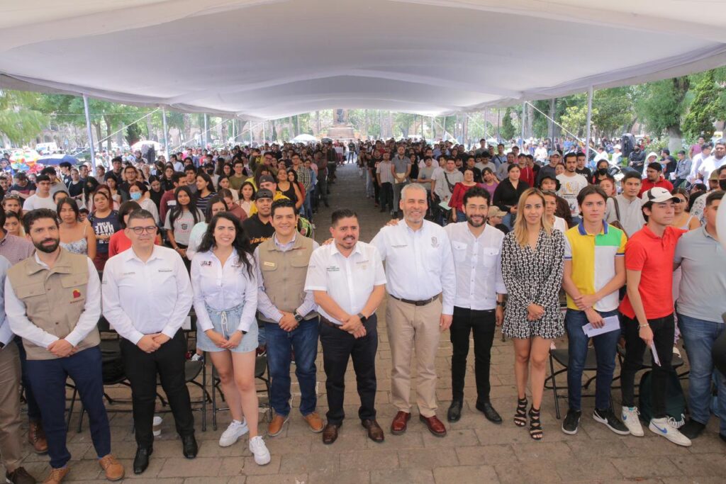 Mil 400 jóvenes de Morelia recibieron los apoyos de un total de 157 mil registrados en Michoacán, informó el mandatario en el evento que se realizó en la Plaza Morelos.