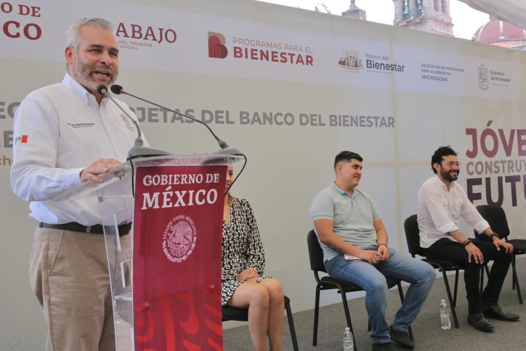 Por su parte, el también coordinador del programa Jóvenes Construyendo el Futuro, Marath Bolaños, agradeció al gobernador el respaldo para entregar apoyos de 6 mil 310 pesos a cada uno de los beneficiarios en Michoacán.