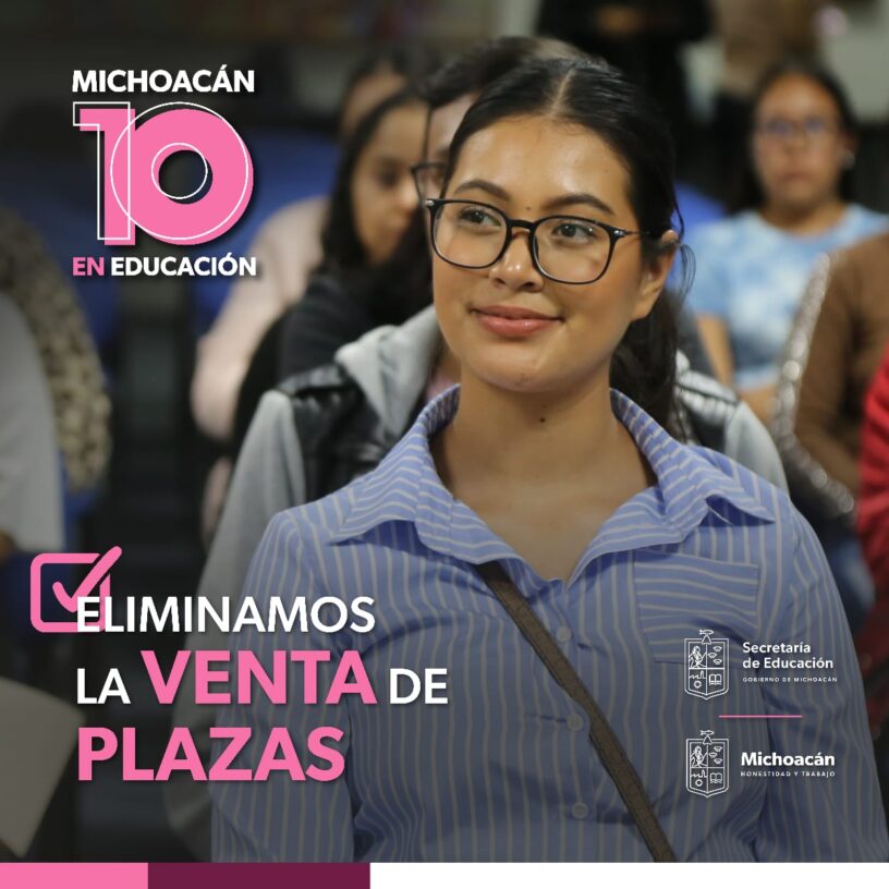 El Gobierno de Michoacán recupera la rectoría de la educación a través de diversas estrategias y combate a la corrupción, como es la eliminación de la venta de plazas educativas, que significaba alrededor de 480 millones de pesos al año.