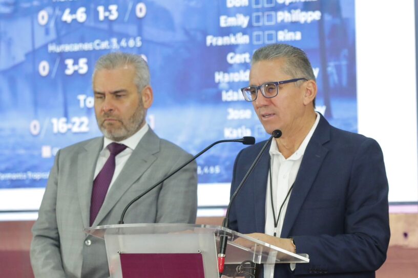 El gobernador Alfredo Ramírez Bedolla, y el delegado estatal de la Comisión Nacional del Agua (Conagua), Jesús Camacho Pérez, dieron a conocer el periodo de Ciclones Tropicales 2023, que permitirá aminorar las altas temperaturas que se han presentado en el último mes.