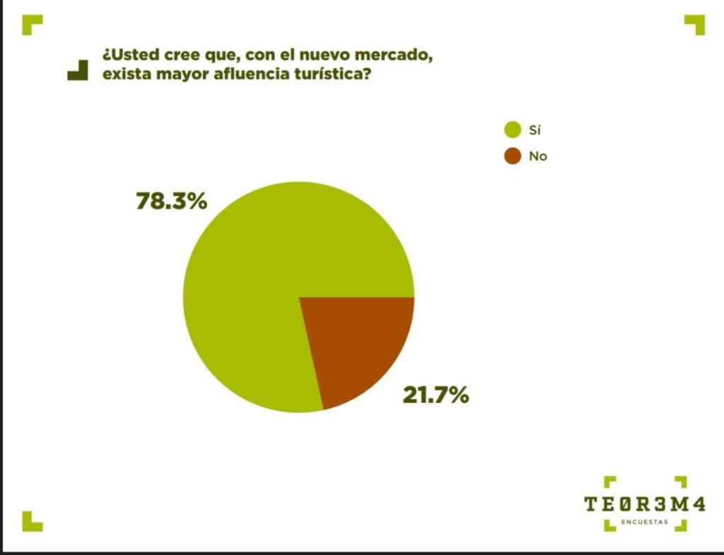 De acuerdo a la encuesta demoscópica, el 82 por ciento de las personas consultadas dijo que el nuevo mercado será beneficioso para el municipio, mientras que solo el 14.8 por ciento manifestó que no es necesario un nuevo establecimiento, al considerar que el actual funciona correctamente.