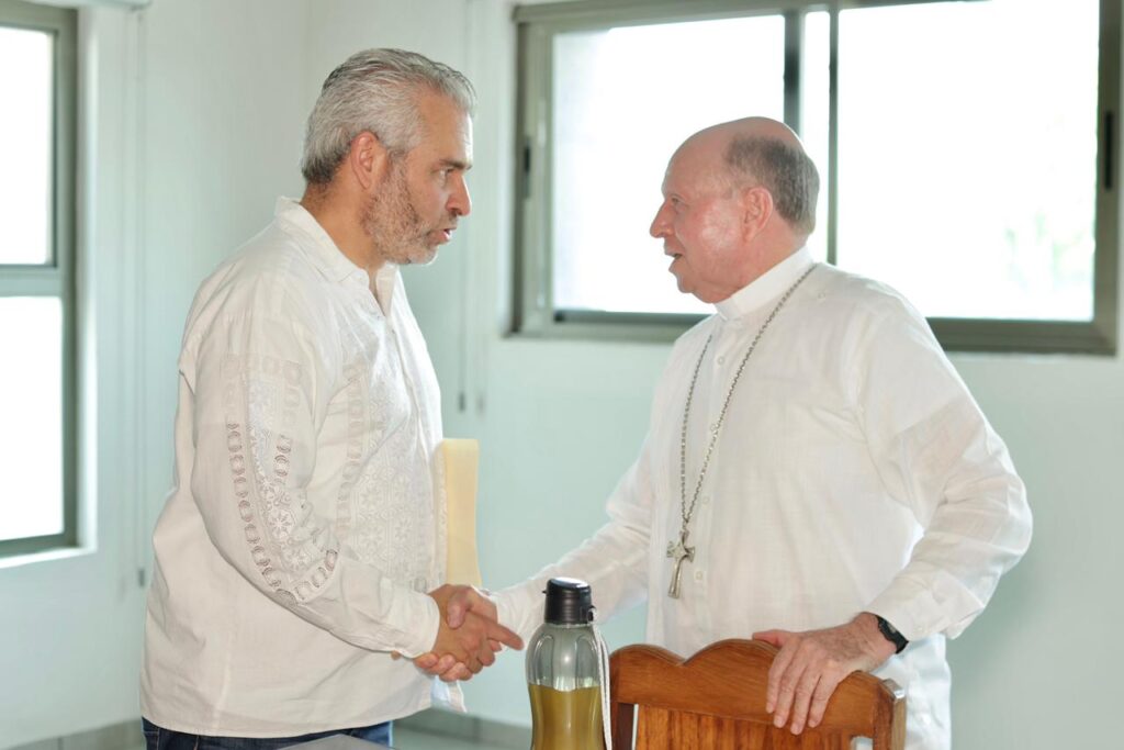 El gobernador Alfredo Ramírez Bedolla y el obispo de Apatzingán, Cristóbal Ascencio García, acordaron coordinación y trabajo en armonía y serenidad por el bien común de la población.