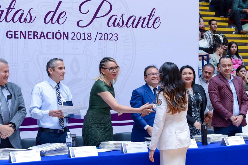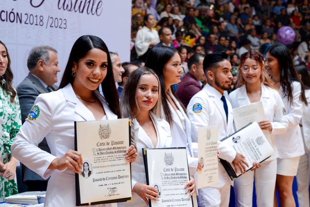 “La Universidad Michoacana forja no solamente profesionistas altamente calificados, de gran nivel técnico y profesional sino también personas de gran corazón y ética, y eso es lo que requiere la sociedad”, indicó la rectora de la Casa de Hidalgo, Yarabí Ávila González, al asistir al acto de entrega de Cartas de Pasante a la generación 2018-2023 de la Facultad de Odontología.