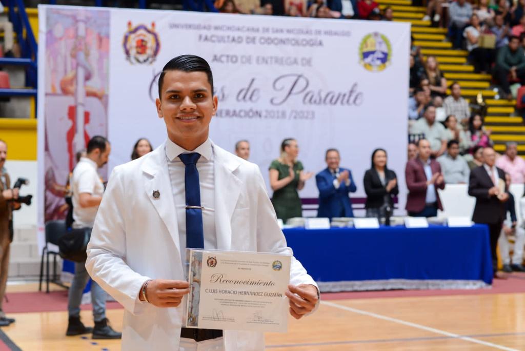 En su turno, el director de la Facultad de Odontología, Oliver Mauricio López Garnica, felicitó a quienes hoy terminaron su formación profesional, y reconoció el empeño que han realizado para llegar a este objetivo. De igual forma, las y los invitó a que sean honrados y que busquen lo que les apasiona y a convertirse en expertos en el área. Manifestó su orgullo de acompañar a la generación 2018-2023, a quienes les dijo, “odontólogo nicolaita tú eres el cambio”.