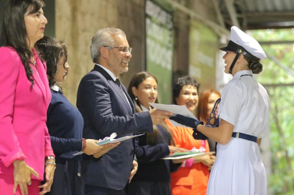 En un gran ambiente festivo al interior del auditorio de la escuela que cuenta con una de las mejores bandas de guerra de Michoacán, las alumnas recibieron su certificado, acompañadas de sus familias, maestras y maestros.