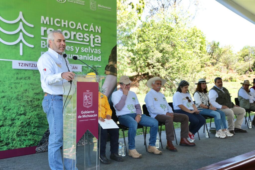 Tras arrancar la jornada de reforestación 2023 en el cerro protegido de Tariaqueri, el gobernador Alfredo Ramírez Bedolla anunció que de forma histórica incrementará el recurso de la Comisión Forestal (Cofom), para producir más de 10 millones de árboles en la entidad y plantarlos en la temporada 2024.