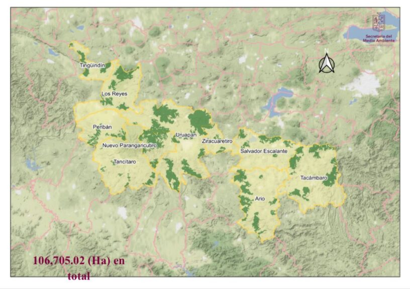 El Gobierno de Michoacán, a través de la Secretaría de Medio Ambiente (Secma), proyecta decretar 80 Áreas Naturales Protegidas (ANP) de 10 municipios de la franja aguacatera, equivalente a 106 mil hectáreas, para garantizar servicios como el abasto y producción de agua.