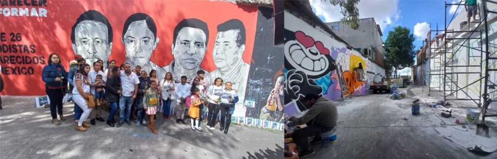 Paradójicamente, el mural de los desaparecidos fue reemplazado por una figura de caricatura que muestra a un personaje que sonríe, algo que asemeja una burla.