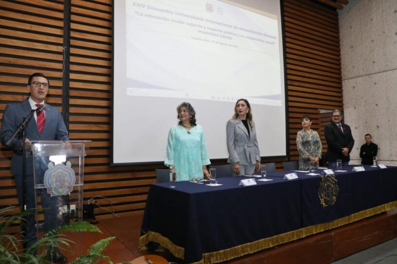 “Nosotros estamos modernizándonos, cuando la rectora Yarabí Ávila González expresó hace más de siete meses que la Universidad Michoacana tenía que cumplir a cabalidad con una oferta educativa pertinente a las necesidades, hablada justamente de ir modernizándonos en nuestros planes de estudios sin trastocar derechos de nadie, más que apostándole a ponderar el interés de los estudiantes quienes hoy nos demandan nuevas ofertas de desarrollo”, afirmó el secretario Académico, Jorge Fonseca Madrigal, al inaugurar el XXIV Encuentro Universitario Internacional de Actualización Docente “La educación media superior y superior pública y su compromiso social”.
