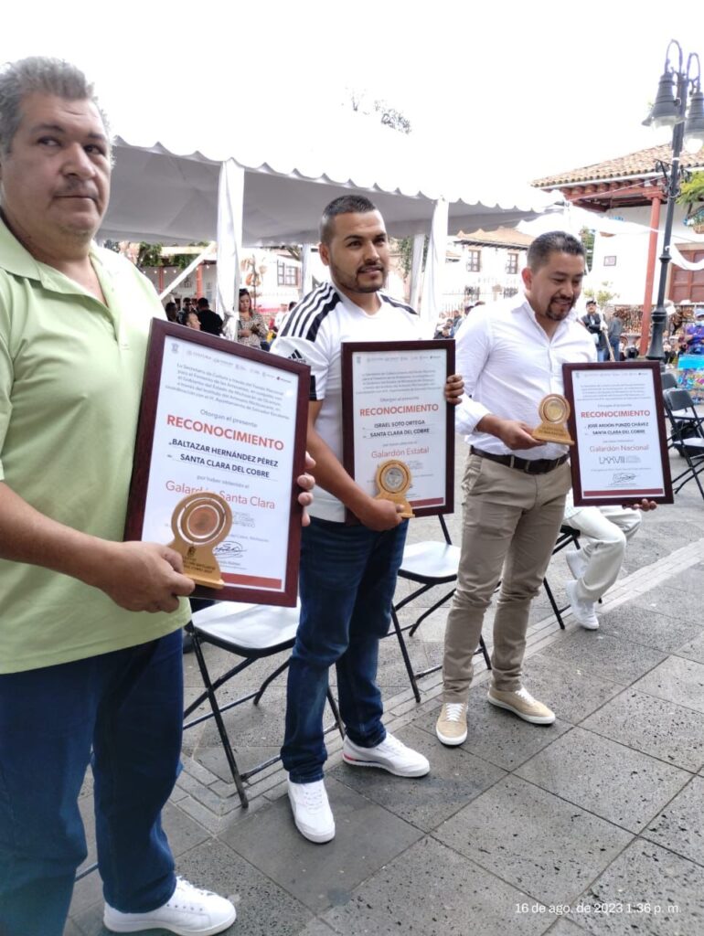 El artesano ganador del Galardón Nacional, fue José Abdón Punzo Chávez, a quien además de su premio en efectivo se le entregó la presea de oro por la elaboración de una jarra brillante con una serpiente emplumada; mientras que Israel Soto Ortega, obtuvo el galardón estatal y la plata por su pieza florero en brillo gajo filo con hojas; y el artesano Baltazar Hernández Pérez, logró el galardón Santa Clara y la medalla de cobre por su cazo grande tradicional.
