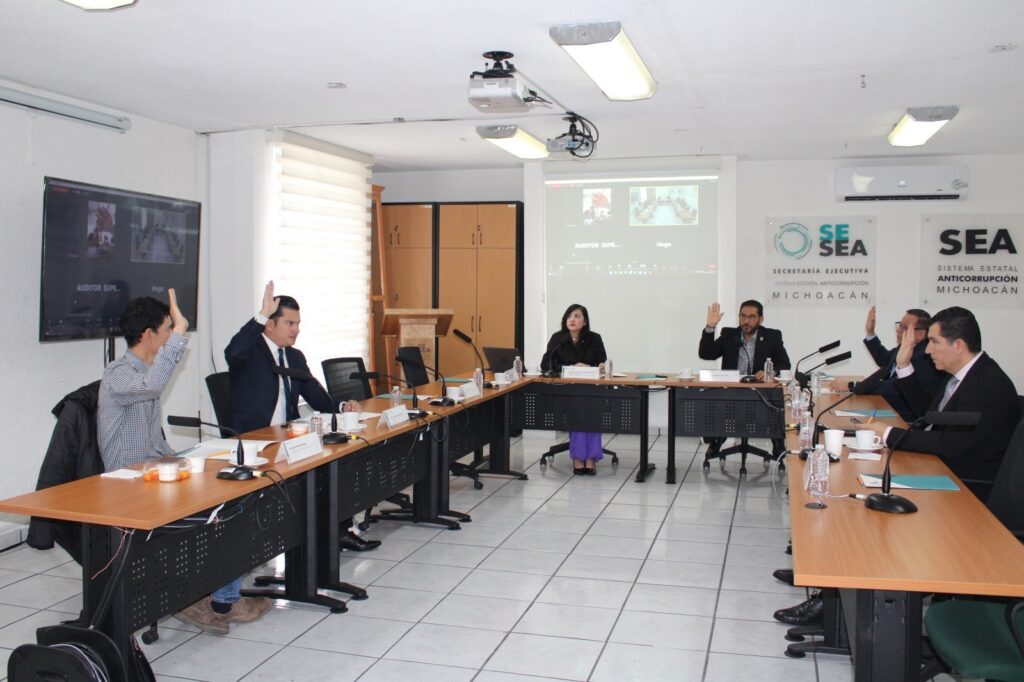 En esta octava sesión extraordinaria participaron Víctor Vieyra Avilés, presidente del Comité de Participación Ciudadana, quien también preside el Comité Coordinador del SEA; Marco Antonio Bravo Pantoja, auditor Especial de Normatividad y encargado del Despacho de la Auditoría Superior de Michoacán por Ministerio de Ley; Azucena Marín Correa, secretaria de la Contraloría; el magistrado Jorge Pérez Zavala, presidente sustituto del Poder Judicial del Estado; Abraham Montes Magaña, consejero presidente del IMAIP.