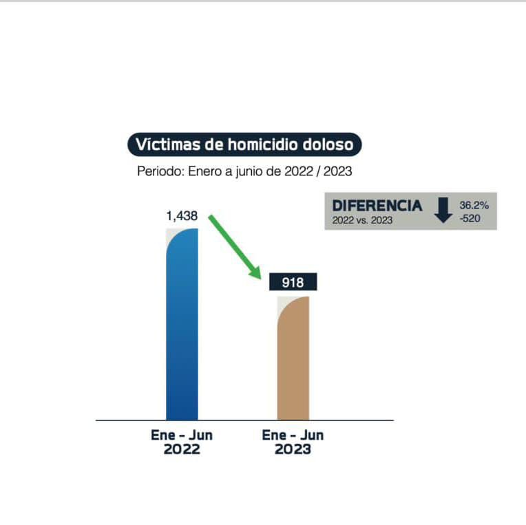 En homicidios dolosos de mujeres, se reportaron 79 víctimas en los primeros seis meses, mientras que en 2022 fueron 146 casos, es decir, menos 67 víctimas entre un periodo y otro.