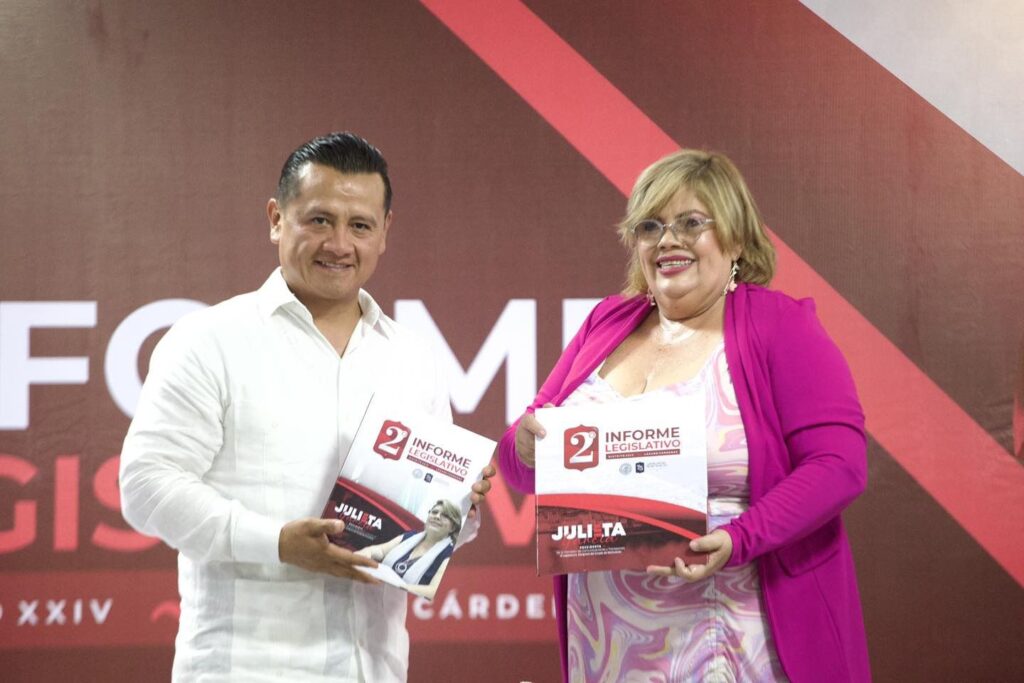 La diputada por el distrito de Lázaro Cárdenas presentó su informe en el Salón de Trabajadores del H. Ayuntamiento de Lázaro Cárdenas, donde detalló que como legisladora presentó 152 iniciativas de ley, reformas, decretos y posicionamientos, de las cuales 31 ya fueron aprobadas.