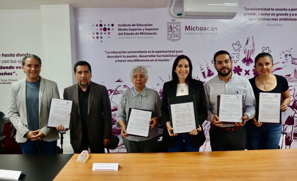 El Instituto de Educación Media Superior y Superior del Estado de Michoacán (IEMSySEM), a través de su directora general, Mariana Sosa Olmeda, fungió como testigo de honor en la firma de este acuerdo institucional que, también, busca facilitar la cooperación en materia de enseñanza superior y la investigación, mediante coloquios, congresos, seminarios y reuniones científicas en las que participen ambas comunidades educativas.