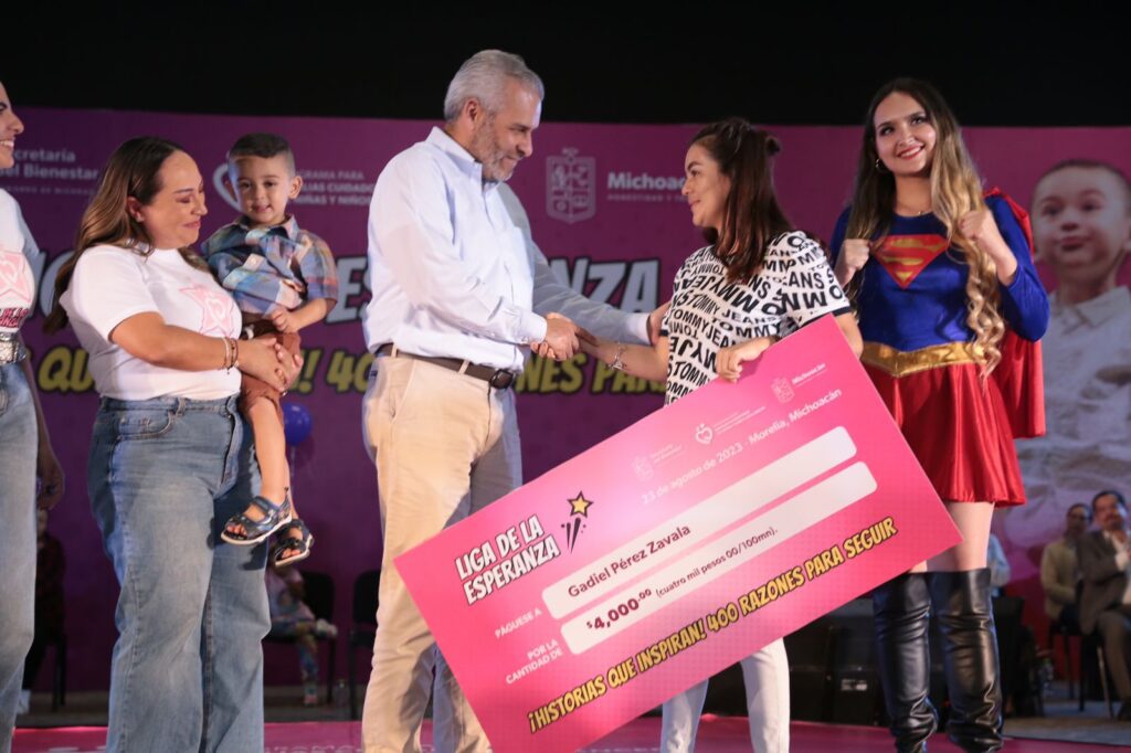Por medio de la Secretaría del Bienestar de Michoacán (Sedebi), la administración estatal abraza la causa de las mujeres y la de los menores con cáncer, y se convierte en el primer estado del país en otorgarles un apoyo mensual de 4 mil pesos durante su tratamiento médico y hasta por tres años de vigilancia.