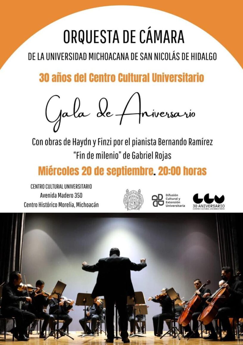 El Centro Cultural Universitario (CCU) de la Universidad Michoacana de San Nicolás de Hidalgo (UMSNH), dará inicio hoy a los festejos de su treinta aniversario con un magistral concierto que ofrecerá la Orquesta de Cámara de la institución.