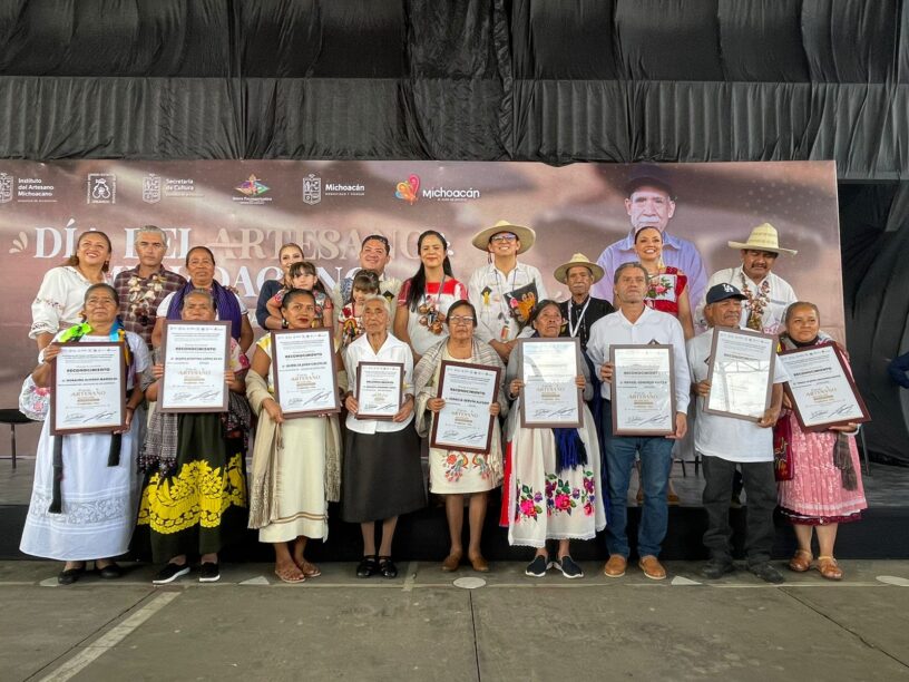 El Gobierno de Michoacán, a través del Instituto del Artesano Michoacano (IAM), reconoció a 63 personas artesanas por sus más de 25 años de trayectoria con un diploma y estímulo económico de 2 mil 500 pesos, en el marco del Día del Artesano Michoacano.