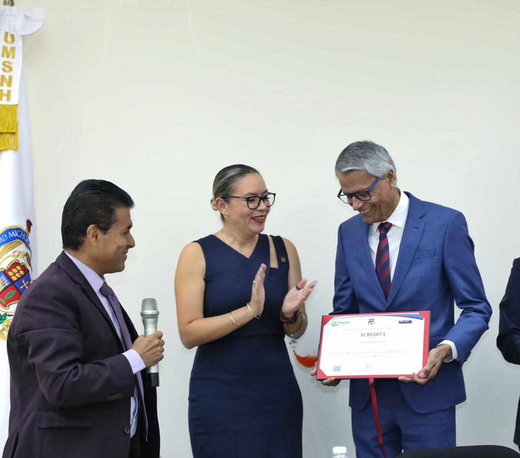 La Universidad Michoacana de San Nicolás de Hidalgo (UMSNH) refrenda su calidad educativa con la acreditación internacional de los programas de las Ingenierías Mecánica y Electricista. La rectora Yarabí Ávila González recibió de manos de Juan Anzures Marín, integrante de la Comisión Técnica de las áreas de Ingeniería Eléctrica y Electrónica del Consejo de Acreditación de la Enseñanza de las Ingenierías (CACEI) el certificado de acreditación de ambas licenciaturas.