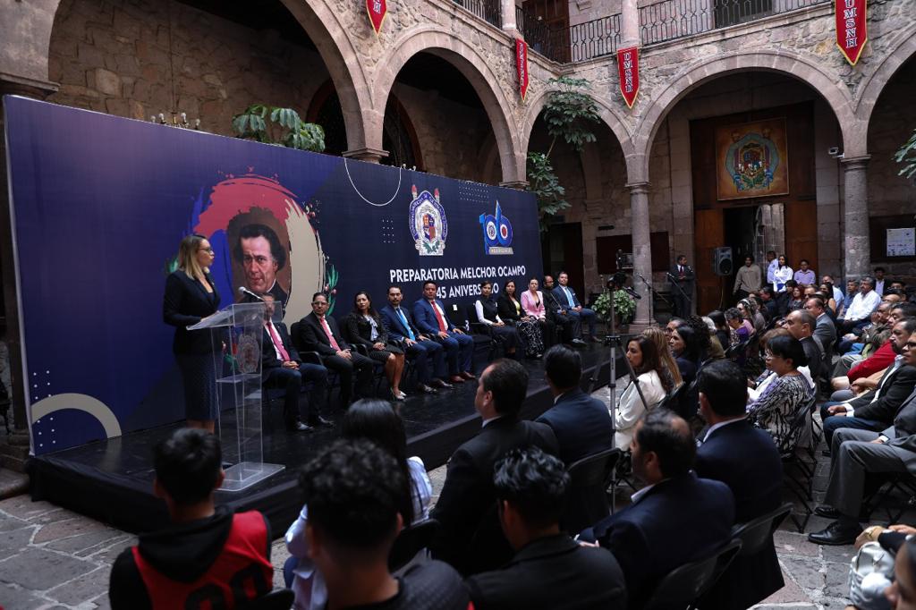 Apuntó que en este aniversario se reconoce la trascendencia de la preparatoria “Melchor Ocampo”, que ha sido formadora de decenas de generaciones, que abrió sus puertas hace 45 años convirtiéndose en una opción de enseñanza, que, hasta la fecha, garantiza una educación laica, de calidad y gratuita.