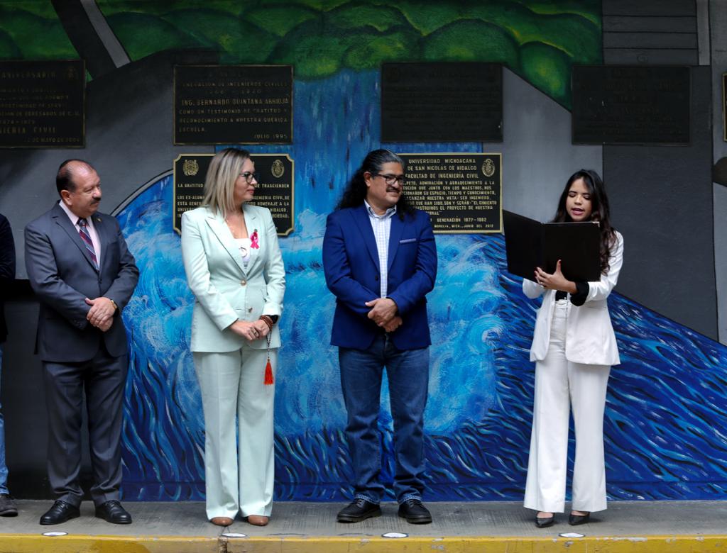 “Quien entra a la Universidad Michoacana, nunca se va”, indicó la rectora Yarabí Ávila González, al inaugurar el mural “La Ingeniería Civil” y posteriormente el equipamiento de dos laboratorios de cómputo en la Facultad de Ingeniería Civil.