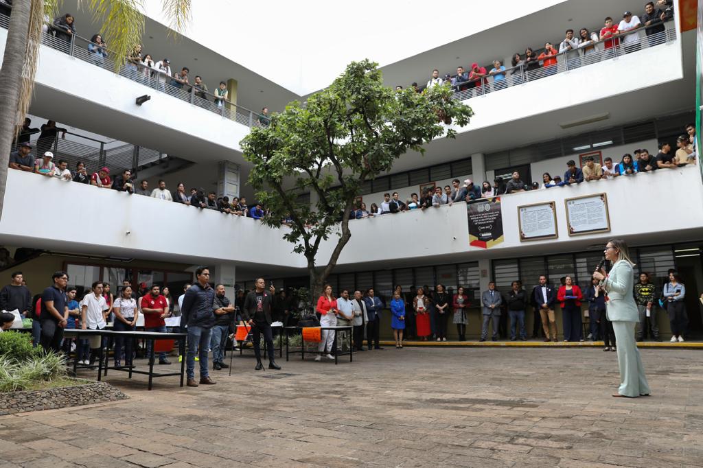 Manifestó su satisfacción por acudir a este evento y contagiarse del gran ánimo que las y los alumnos mostraron durante el corte del listón de la obra ubicada en el patio principal de la institución.