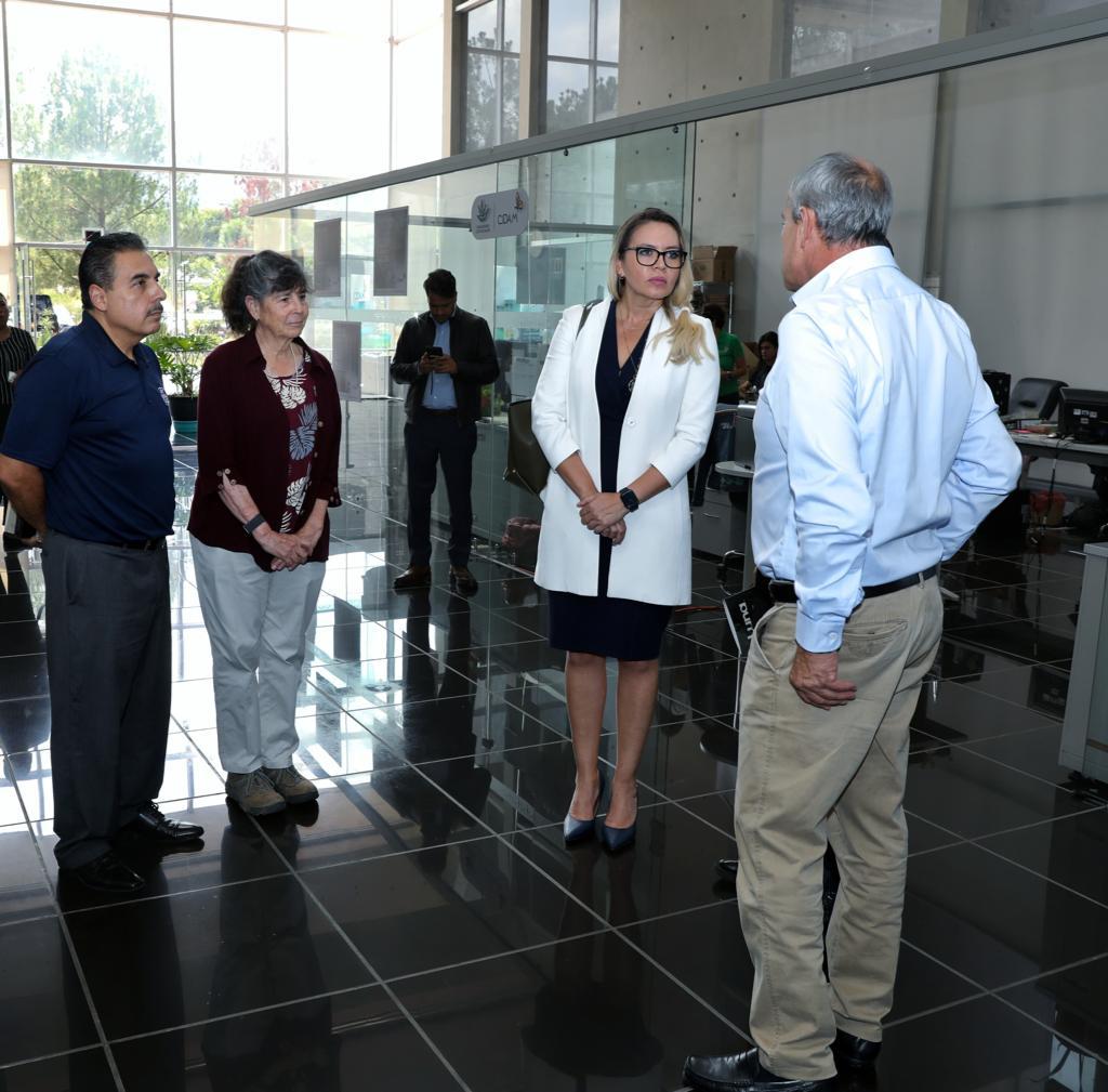 Tras hacer un recorrido en las instalaciones y laboratorios del CIDAM en donde investigadoras e investigadores nicolaitas realizan un arduo trabajo en diversas áreas del conocimiento, la rectora tuvo un encuentro con el ingeniero José Hernández, astronauta de origen mexicano, que visitó el estado como representante de la UC Riverside al igual que la doctora Mary Lu Arpaia, quienes presentaron dicho proyecto.