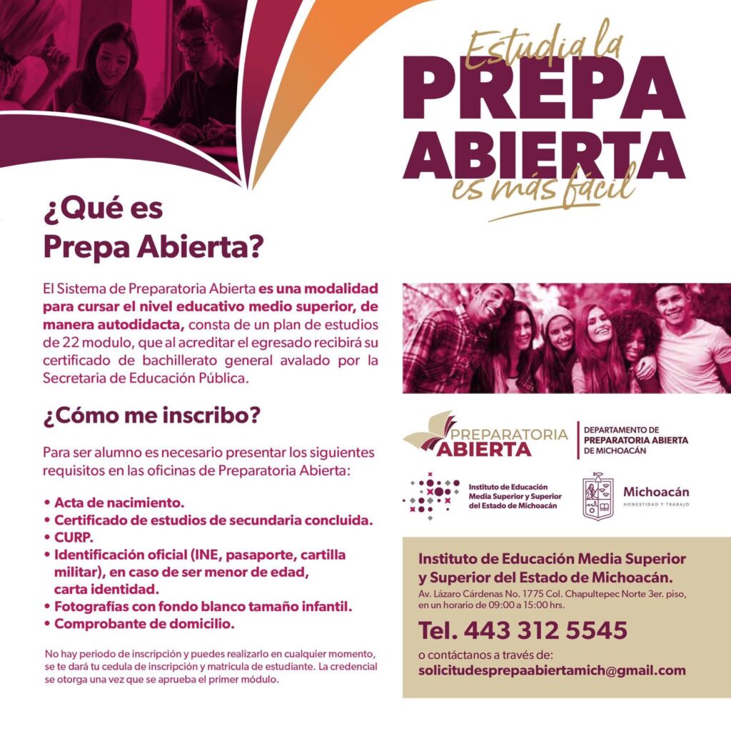 En lo que va de este 2023 se han recibido mil 681 solicitudes de exámenes y entregado 89 certificados de Prepa Abierta a quienes han concluido sus estudios, a través de este sistema educativo nacional. Para más información puedes enviar un mensaje a la página en Facebook del IEMSySEM: https://www.facebook.com/IEMSySMich?mibextid=LQQJ4d.