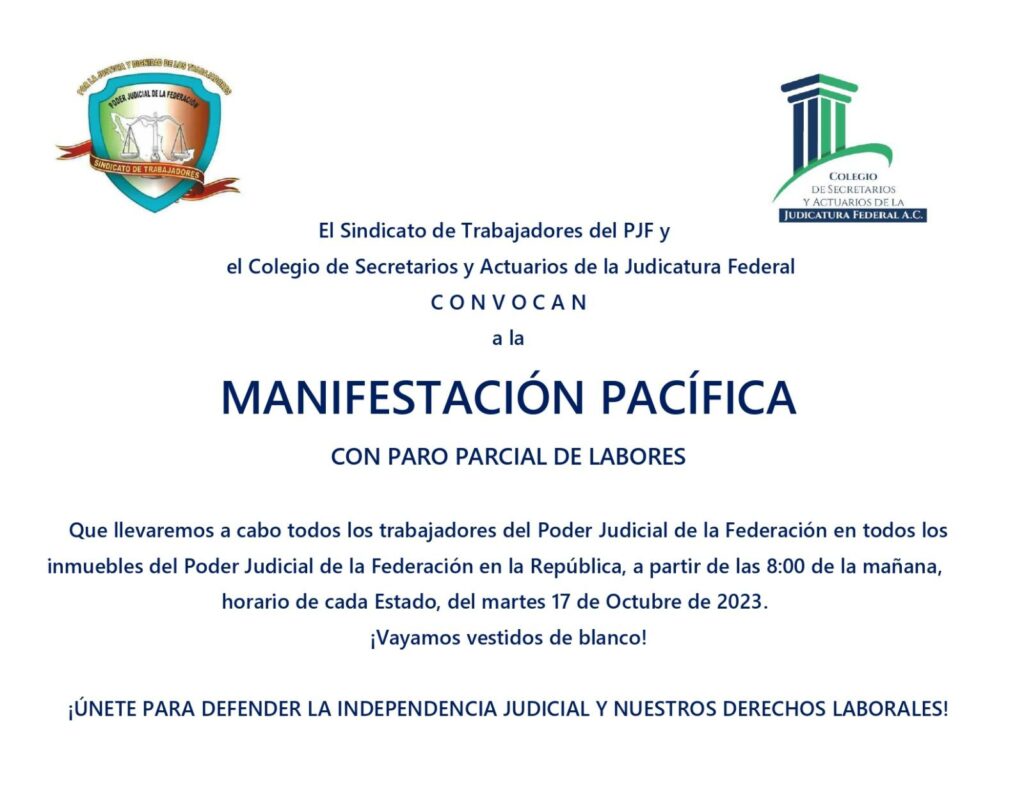 Esa protesta es una más de las que se llevarán a nivel nacional, el mismo día, en todos los edificios del PJF; es más que evidente que detrás de esto subyace el afán de debilitar a una de las pocas instituciones que guarda independenciacontrario a lo que el titular del Poder Ejecutivo Federal considera por un mero capricho, hacerse de la institución a más tardar en el próximo sexenio, lo que sería un golpe de muerte para nuestra democracia.